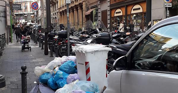 NAPOLI. «Il piano sta funzionando alla grande, ieri sono state conferite quasi 1400 tonnellate di rifiuti grazie a uno sforzo straordinario dello Stir di Caivano, le criticità sono rientrate e tra stanotte e oggi saranno recuperate le giacenze». Così il sindaco di Napoli, Luigi De Magistris, sulla situazione della raccolta dei rifiuti in città. Ma in tarda mattinata (lunedì 2 dicembre alle ore 11,19) cumuli di sacchetti erano ancora presenti nella zona dello shopping. Nella foto la situazione rifiuti tra via dei Mille e piazzetta Rodinò.