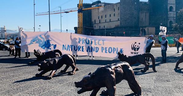 NAPOLI. Nel giorno in cui i ministri dei Paesi del Mediterraneo discuteranno del futuro del nostro mare, il Wwf lancia un messaggio per la difesa del Mare Nostrum ai delegati della Cop21 della Convenzione di Barcellona, in corso a Napoli. I volontari dell'associazione questa mattina hanno aperto uno striscione con lo slogan "Proteggere la natura e le persone" accanto ai simboli della natura selvaggia, i lupi dell'artista cinese Liu Ruowang. Il Wwf ha voluto così richiamare l'urgenza di un Mediterraneo sostenibile richiamando gli obiettivi globali di tutela della biodiversità e per un'economia Blu. La richiesta è per un impegno più stringente su tutte le emergenze: inquinamento, plastica, clima, sovrasfruttamento delle risorse ittiche, trivellazioni, traffico marittimo.