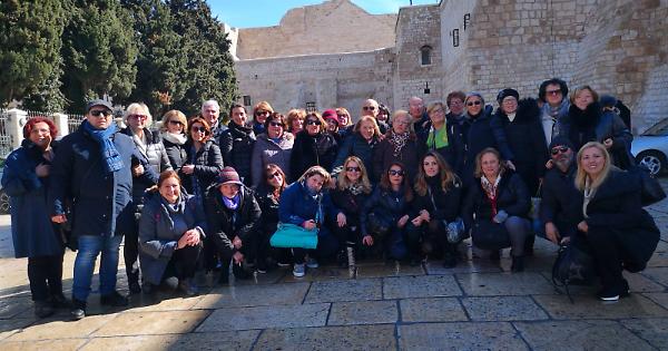 CASTELLAMMARE DI STABIA. Per comprendere le ragioni della luce nei volti dei 38 pellegrini atterrati a Capodichino dopo un tour a Gerusalemme, bisogna riavvolgere il nastro del tempo e ripercorrere con loro i 5 giorni che hanno vissuto in Terra Santa, con la guida spirituale di don Mario Cavaliere, parroco della Chiesa di San Matteo, e che ha accompagnato il gruppo dei fedeli che ruotano intorno alla Congrega di San Giacomo, a Castellammare di Stabia. Il viaggio è stato protetto dall’Alto, con un clima sempre primaverile e un forte legame d’amicizia tra i partecipanti. Prima tappa: Nazareth, in Galilea, nella grotta dove è nato il Cristianesimo: il luogo dell’Annunciazione e del “sì” di Maria. È proseguito verso il “Monte Tabor”, luogo della Trasfigurazione e alla collina “del discorso delle Beatitudini’, fino al lago di Tiberiade, con tappe alla casa di Pietro, nel villaggio dei pescatori del lago che divennero apostoli e discepoli di Cristo, a venti minuti dal confine con la Siria. Poi Betlemme, nella “stalla” dove è nato Gesù e nella “casa” abitata da Maria, la grotta del latte, fino alla fuga in Egitto. Il pellegrini sono giunti infine a Gerusalemme, dove hanno camminato sulla Via Dolorosa, per salire sul Golgota ed entrare nel Santo Sepolcro, per assistere infine alla suggestiva chiusura serale della Basilica. Sono state toccate tutte le tappe fondamentali del Vangelo: quel che resta del Tempio di Salomone (Muro del Pianto); la spianata del monte Moria (delle Moschee); il Cenacolo, il Getsemani; la basilica della Dormitio Maria e quella del Sepolcro di Maria. Fino all’ultimo giorno, con la celebrazione del Vangelo della Crocifissione proprio sul Golgota, che ha lasciato i fedeli senza respiro. Sul cammino di Gesù, hanno percorso circa 37 km a piedi.