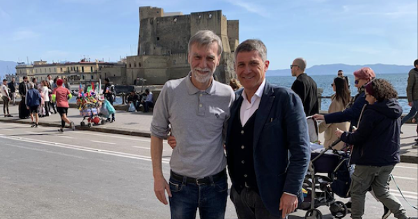 NAPOLI. Graziano Delrio (a sinistra nella foto con Antonino Della Notte) è in vacanza a Napoli. L’ex ministro delle Infrastrutture, e attuale capogruppo del Partito Democratico alla Camera dei deputati, sta visitando la città approfittando anche della splendida giornata di sole. Per lui, accompagnato dalla moglie e dai nove figli, non è mancata una passeggiata sul lungomare di via Partenope ed una tappa al ristorante “Antonio&Antonio” dove ha gustato le specialità culinarie partenopee.