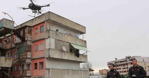 NAPOLI. Controlli anti-contagio dei carabinieri del Comando Provinciale di Napoli nel quartiere di Scampia. L’operazione, svolta dal nucleo radiomobile di Napoli e dai militari della stazione 167, è stata effettuata con il supporto di un drone militare guidato da due piloti del 7 Nucleo Elicotteristi di Pontecagnano. Il drone è stato utilizzato per rendere più efficaci i servizi di monitoraggio del territorio ed evitare che in alcuni luoghi potessero crearsi assembramenti. Luoghi come supermercati, uffici postali o pensiline dei mezzi pubblici al cui esterno potrebbero crearsi ambienti favorevoli al contagio. Durante il servizio, le immagini dall’alto hanno permesso di appurare che non vi fossero assembramenti a Scampia, neppure nelle aree normalmente molto affollate, compresa la fermata della metropolitana.