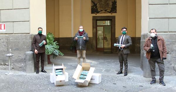 NAPOLI. Sono state consegnate oggi al sindaco di Napoli Luigi de Magistris le prime 2000 mascherine donate da Confartigianato Napoli ed Ancos alle quali se ne aggiungeranno altre 8000 che arriveranno nei prossimi giorni e che saranno distribuite a quanti sono impegnati sul fronte dell’emergenza al Covid - 19. Le mascherine sono state consegnate al sindaco dal presidente dei giovani imprenditori di Confartigianato Napoli Ernesto Taccogna accompagnato dal consigliere comunale Francesco Vernetti.