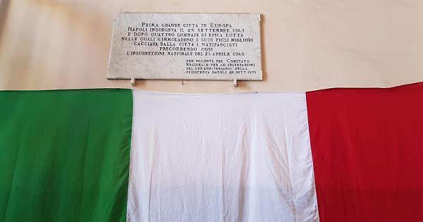 NAPOLI. Il sindaco Luigi de Magistris presenzierà domani 25 aprile alle ore 11, con il prefetto di Napoli Marco Valentini ed il presidente provinciale dell'ANPI Antonio Amoretti, alla deposizione di una corona di alloro alla targa commemorativa della Liberazione che si trova nel cortile di Palazzo San Giacomo. Un trombettiere della banda dei Carabinieri suonerà il silenzio.