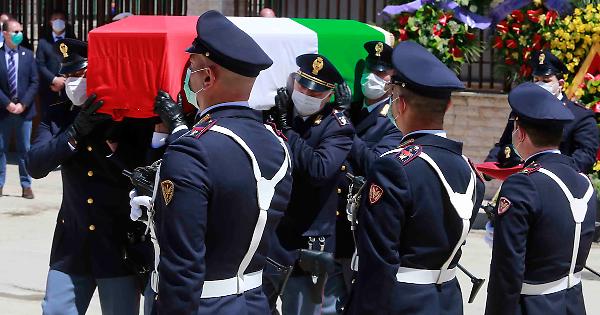 NAPOLI. Sono iniziati i funerali di Pasquale Apicella, il poliziotto 37enne morto lo scorso 27 aprile durante un inseguimento a una banda di rapinatori. La bara, avvolta dal tricolore, ha fatto ingresso nella chiesa cristiana evangelica di Secondigliano. Alla cerimonia funebre sono presenti anche il ministro dell'Interno Luciana Lamorgese, il capo della polizia Franco Gabrielli, il presidente della Regione Campania Vincenzo De Luca, il sindaco di Napoli Luigi de Magistris, il prefetto Marco Valentini, il questore Alessandro Giuliano. La polizia di Stato trasmette la cerimonia funebre in diretta streaming sulla propria pagina Facebook.