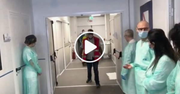 In un video registrato dai sanitari si vede l'uomo - Sabato, un 59enne di Somma Vesuviana - accogliere la notizia della sua dimissione in giornata dalla struttura con un pianto liberatorio, poi gli applausi di medici e infermieri mentre lascia il reparto ringraziando chi lo ha assistito in questi giorni. E con la benedizione di padre Luigi, il sacerdote dell'ospedale.