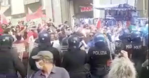 Sono stati circa 200 invece i manifestanti che hanno improvvisato il corteo, vietato dall'attuale normativa legata al contagio da coronavirus, e hanno cercato di raggiungere piazza Municipio.