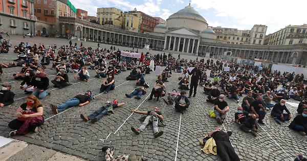 «Convocateci dal vivo!». Con questo slogan, in diverse città italiane sono scesi in piazza i lavoratori e lavoratrici dello spettacolo dal vivo che protestano contro la gestione della crisi provocata dal coronavirus. Manifestazioni in piazza Plebiscito a Napoli, a Roma, Milano, Palermo e in un'altra decina di città «per dire con fermezza e determinazione che la Cultura non può essere più secondaria a niente». Il coordinamento nazionale per lo spettacolo dal vivo chiede di essere conovocato dalle istituzioni e «finché non ci sarà un incontro - avverte - noi saremo pronti a mantenere uno stato di agitazione permanete dello spettacolo e della cultura in Italia».