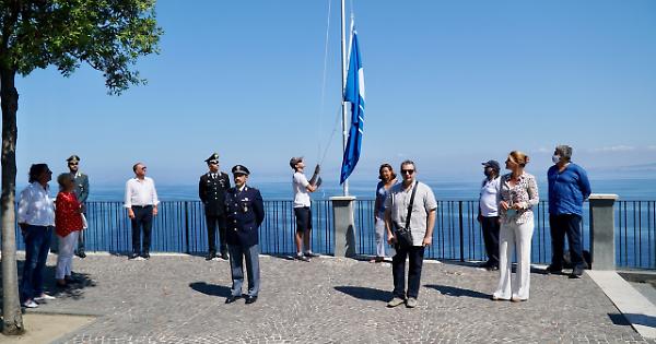 SORRENTO. Questa mattina, nella villa comunale Salve D'Esposito, a Sorrento, si è svolta la cerimonia ufficiale per la Bandiera Blu, assegnata per il terzo anno consecutivo alla cittadina costiera.