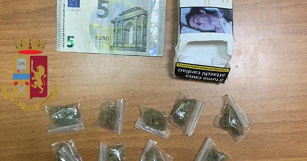 I poliziotti lo hanno bloccato trovandolo in possesso della somma di 5 euro e di 9 bustine contenenti marijuana per un peso complessivo di circa 9 grammi.