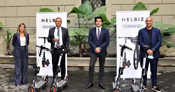 La presentazione del servizio di sharing delle 900 unità a due ruote si è tenuta questa mattina nel cortile di Palazzo San Giacomo alla presenza del sindaco Luigi de Magistris e dell'assessore Alessandra Clemente, insieme ai rappresentanti di Helbiz e Telepass Giovanni Borrelli e Gabriele Benedetto.