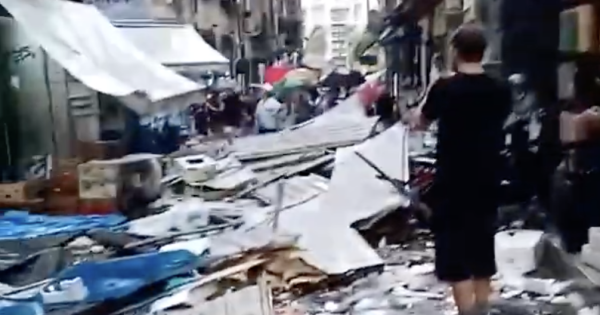 Tragedia sfiorata alla Pignasecca, dove durante la bomba d'acqua che si è abbattuta sulla città una tettoia è stata sradicata dal vento e si è abbattuta in strada. Miracolosamente salva una ragazza, solo sfiorata dalla tettoia.