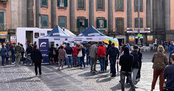 Una lunga coda fin dall’avvio dei test, alle 9,30 del mattino, in piazza Dante a Napoli per lo screening gratuito che gioca d’anticipo contro due grandi nemici della nostra salute: Covid-19 ed Epatite C. È stata massiccia e ordinata, nonostante la pioggia - circa 200 le persone registrate a metà giornata, eguagliando il risultato della tappa inaugurale a Roma - la partecipazione alla “prima” campana del roadshow, organizzato dalla società di consulenza manageriale in ambito healthcare, MA Provider, con il contributo non condizionato di Abbvie. Domani si replicherà in Piazza Amendola a Salerno dove ci si potrà prenotare per i test dalle 9.15 alle 12.30 .