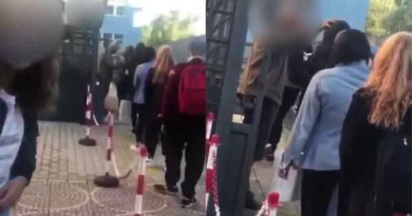 Gli studenti in coda per entrare a scuola, all'istituto “Caravaggio" di San Gennaro Vesuviano mentre il bidello, con una mano sulla fronte, controlla se hanno la febbre. Il video è stato postato sui social da Gianni Simioli de “La Radiazza", in onda su Radio Marte.