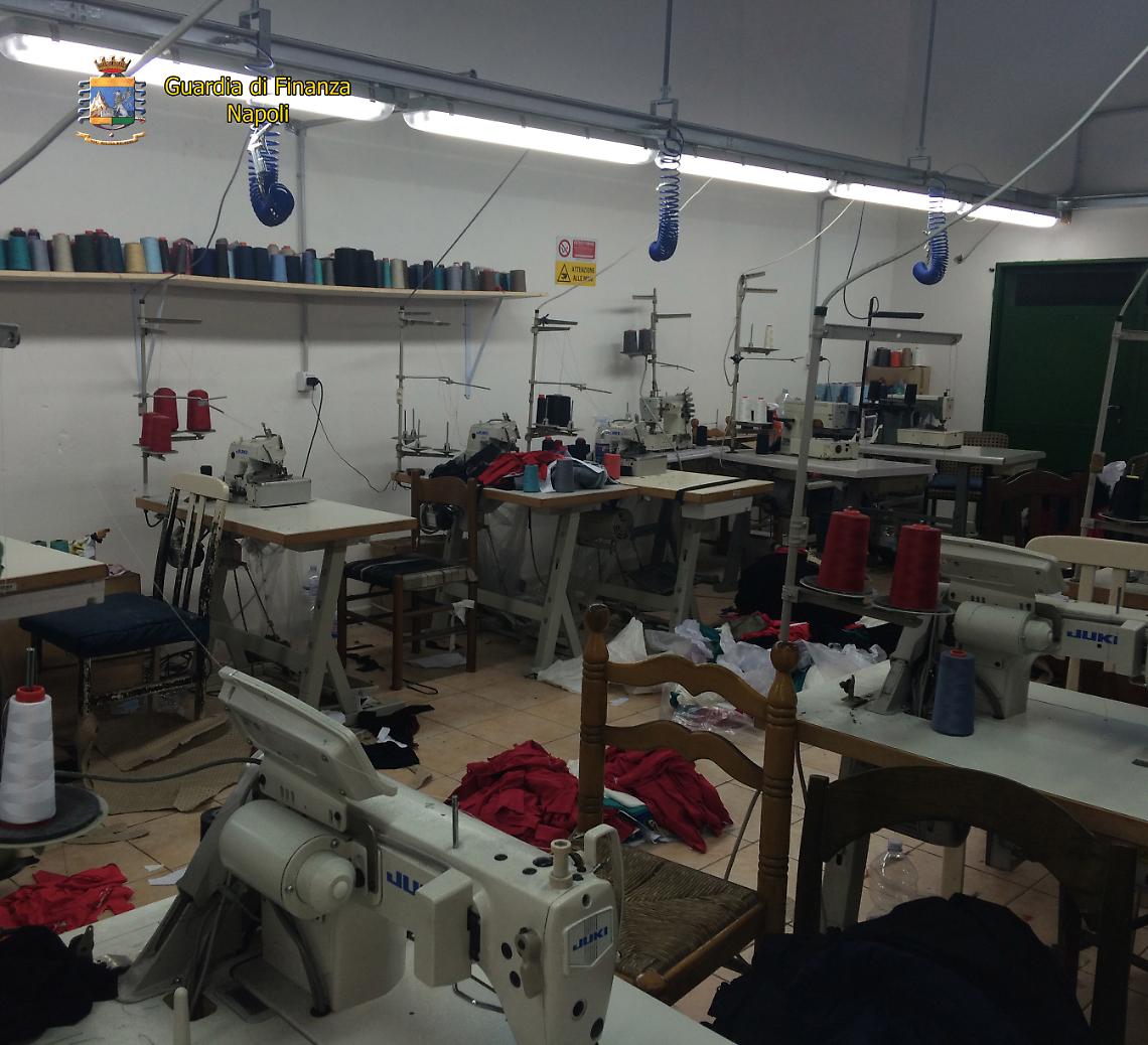 STRIANO. L'attività di servizio in materia di sommerso da lavoro, svolta dalla Guardia di Finanza di Torre Annunziata, ha condotto al sequestro a Striano di un opificio clandestino di circa 100 mq, realizzato al piano interrato di un immobile adibito a civile abitazione, dove era stata allestita una vera e propria catena industriale costituita da macchine cucitrici, tagliacuci ed assi da stiro. Scoperti 7 operai impiegati "in nero" di cui 6 senza permesso di soggiorno.