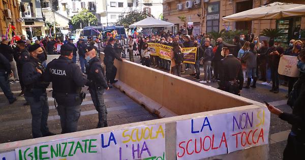 Il mondo della scuola manifesta per il quarto giorno consecutivo fuori alla sede della Regione Campania in via Santa Lucia a Napoli. In centinaia sono già riuniti sotto il palazzo della Regione, tra genitori, docenti e autisti di scuolabus, ma ci sono pochi studenti poiché impegnati con la didattica a distanza. Decine di cartelloni sono affissi fuori a palazzo Santa Lucia.
