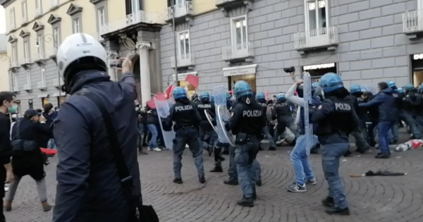 Incidenti sono scoppiati questo pomeriggio in piazza dei Martiri, a Napoli, dove i manifestanti dei Centri sociali dei Cobas, dei Carc e di altre sigle di estrema sinistra hanno fatto esplodere tre bombe carta. La Polizia ha risposto con una carica, disperdendo i manifestanti.