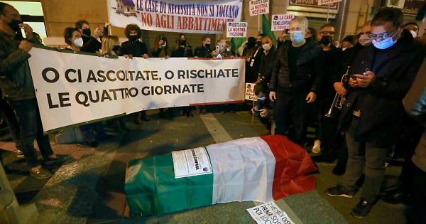Oggi pomeriggio l'ennesima manifestazione contro le misure nazionali e regionali per contrastare la diffusione della pandemia. Misure che nel giro di poche ore si preparano a diventare ancora più restrittive con la firma da parte del presidente del Consiglio Giuseppe Conte di un nuovo Dpcm. Il “corteo funebre" dei negozianti è partito dalla Rotonda Diaz sul lungomare dove è arrivato un carro mortuario con all'interno una bara vuota che per i manifestanti sta a rappresentare l'economia a Napoli e nell'intera regione.