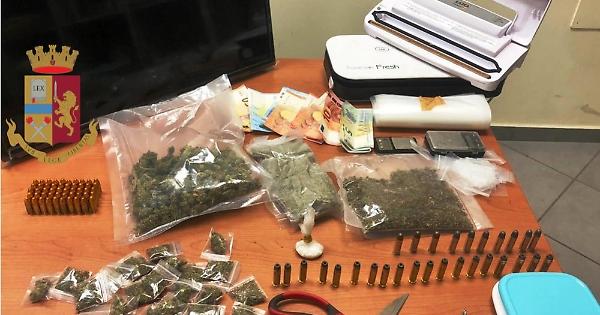 I poliziotti l’hanno rintracciato in via Candido all’interno del cortile della sua abitazione e l'hanno trovato in possesso di 165 euro, di un involucro con 6 grammi circa di cocaina, di tre buste contenenti marijuana per un peso di circa 126 grammi e di altre 24 bustine della stessa sostanza per un peso complessivo di 25 grammi.