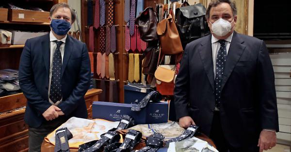 Nello showroom Cilento, infatti, sono disponibili le cravatte in seta sette pieghe ed i foulard sartoriali ispirati alle opere dell'Archeologico: un armonico gioco di forme e colori, visione d'insieme e dettaglio, per gli appassionati di arte ed eleganza.