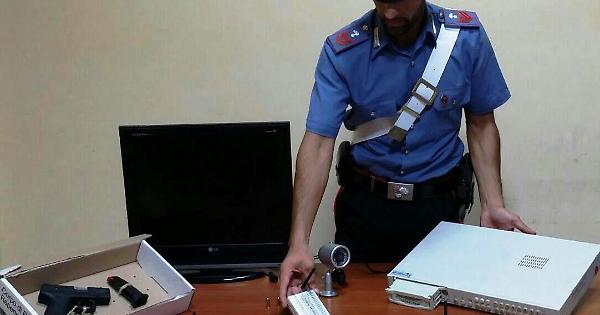 Durante la perquisizione domiciliare, i militari hanno scoperto che il 35enne teneva in una cassaforte una pistola semiautomatica calibro 7,65 con matricola abrasa e 5 cartucce nel caricatore, una pistola a salve simile a quelle in uso alle forze dell'ordine priva di tappo rosso e 5 grammi di marijuana. Trovato e sequestrato anche un impianto di videosorveglianza composto da 2 telecamere wireless, un monitor e, addirittura, un sistema di registrazione, verosimilmente installato (abusivamente) per eludere controlli delle forze dell'ordine..