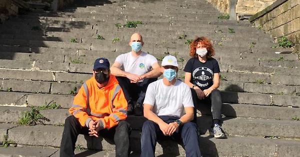 NAPOLI. Tre aiuole, una scalinata, arbusti ingombranti e rifiuti. Questo è ciò di cui si sono occupati sabato mattina i volontari delle associazioni La Via della Felicità, Miniera dei Quartieri Spagnoli e il volontario Adrian Di Capua. Il Tondo di Capodimonte, noto per la sua pianta ovale, è situato nel quartiere Stella al termine del corso Amedei di Savoia e all’inizio della via di Capodimonte. Progettato dall’architetto Antonio Niccolini, il centro del tondo diviene una rotatoria naturale, con un elegante giardino fioritocon fontane a vasca. In fondo invece è possibile ammirare la monumentale scala, col toponimo di gradini di Capodimonte, che permette tutt’oggi un più facile accesso alla collina, per coloro che recano alla Reggia a piedi. Un sito storico da preservare a tutti gli effetti. Per questo i volontari stanno impegnando tempo e forze per riuscire a riportare al suo massimo splendore questo luogo, togliendo tutto ciò che lo possa degradare: rifiuti, plastiche, arbusti ingombranti, sostituendoli con aiuole sistemate e ripulite.