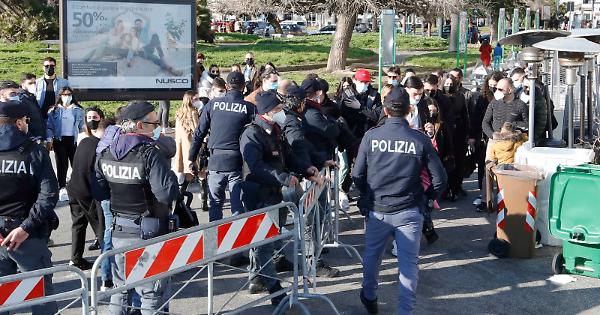 A causa del progressivo aumento di persone sul lungomare di Napoli è stato transennato il marciapiede che da piazza Vittoria va verso Santa Lucia. Viene consentita solo l'uscita di chi si trova già all'interno dell'area che comprende i locali del lungomare. La misura - concordata in occasione di un tavolo tenuto nei giorni scorsi in Prefettura - serve ad evitare assembramenti. A far rispettare il blocco Polizia, Carabinieri, Guardia di Finanza, Polizia Municipale e Protezione Civile.