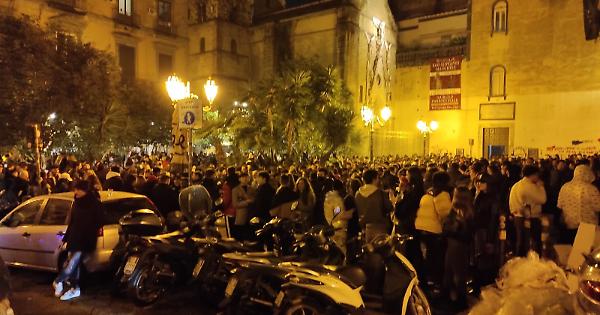NAPOLI. Nella serata di ieri, a seguito di segnalazioni alla Centrale Operativa della Polizia Locale, di un assembramento in Largo Banchi Nuovi, denunciato anche a mezzo social da molti cittadini, si è intervenuto, in sinergia con l’ordine pubblico Carabinieri di Napoli nei pressi di Via Santa Chiara dove un ristoratore proseguiva l'attività di somministrazione, senza rispettare le limitazioni previste dalla normativa nazionale e regionale anti Covid. Le pattuglie sono intervenute trovando dinanzi al locale decine di giovani, alcuni dei quali in attesa per entrare e consumare.