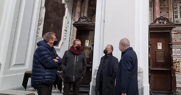NAPOLI. Il sindaco di Napoli Luigi de Magistris con il Vice Sindaco Carmine Piscopo ha presenziato stamani al sopralluogo (nella foto) per il completamento dei lavori di restauro della chiesa di San Pietro Martire in piazzetta Ruggero Borghi, eseguiti nell’ambito del Grande Progetto Centro storico di Napoli – valorizzazione sito UNESCO.