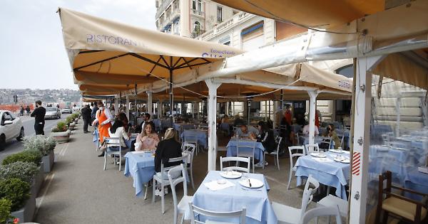 NAPOLI. Napoli zona gialla e si torna al ristorante. Soprattutto sul Lungomare, dove oggi si sono rivisti i clienti. Tavoli occupati anche nei bar per il rito dell'apertivo. I ristoratori sono preoccupati che il coprifuoco alle 22 possa scoraggiare la clientela di sera, quando tradizionalmente c'è più folla e quindi guadagni. Ma questa prima giornata di riapertura lascia ben sperare.