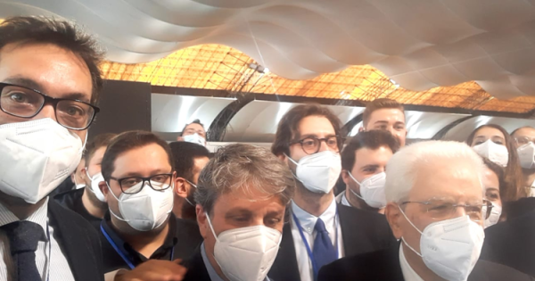 Selfie del Presidente della Repubblica Sergio Mattarella con i giovani volontari che prestano servizio all'hub vaccinale della Fiera del Mediterraneo di Palermo. Prima di lasciare la Fiera Mattarella si è fermato per un attimo con i giovani che gli hanno chiesto un selfie. E lui ha accettato. "Ci ha ringraziati per quello che facciamo", dice emozionato Marcello Capetta che lavora con il commissario straordinario Covid Palermo, Renato Costa. "Ci ha salutati e poi è andato via, ci tenevamo davvero a fare una fotografia con il nostro Presidente. Siamo qui da mesi a lavorare giorno e notte e volevamo salutare il Presidente Mattarella", dice ancora Capetta all'Adnkronos. Mattarella è stato poi accompagnato anche al centro direzionale.