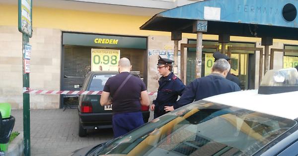MARANO. Rapina con spaccata alla Credem di corso Europa, panico a Marano. Secondo una prima ricostruzione, in quattro, dopo aver lanciato un'auto a tutta velocità contro la vetrata dell'istituto bancario, hanno fatto irruzione nel locale. Armi in pugno, hanno minacciato dipendenti, dandosi poi alla fuga con il bottino. che non è stato ancora quantificato. Sul posto i carabinieri.