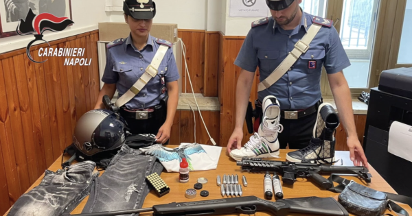 Perquisite le rispettive abitazioni ed i veicoli ad essi in uso, sono state rinvenute e sequestrate una carabina ad aria compressa marca Striker-Atsan calibro 5,5, una replica di mitragliatrice marca MP calibro 4,5 a gas, tredici ricariche gas, quarantadue cartucce a salve calibro 9, una confezione di pallini marca Asg e una confezione di piombini marca Polimag.