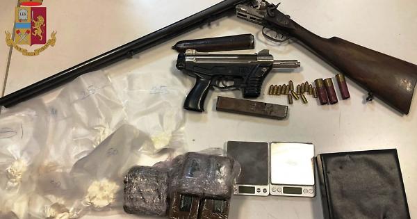 Ne è nato un inseguimento terminato in via Carriera Grande dove i poliziotti hanno bloccato l'uomo e una donna che era a bordo ed hanno rinvenuto, sotto il sedile del lato passeggero, un panetto di cocaina del peso di circa 1050 grammi. Inoltre gli operatori, con il supporto degli agenti del Commissariato Vicaria-Mercato, hanno effettuato un controllo in vicoletto Chiavettieri al Pendino presso l’abitazione della donna dove hanno rinvenuto, all’interno di uno zaino, 7 involucri con 330 grammi circa di cocaina, 2 blocchi con 1420 grammi circa di hashish e due bilancini di precisione e, in una busta, una pistola mitragliatrice marca Luger cal. 9x21 priva di matricola con 14 cartucce 9 mm e un fucile cal. 12 con 3 cartucce cal. 12.