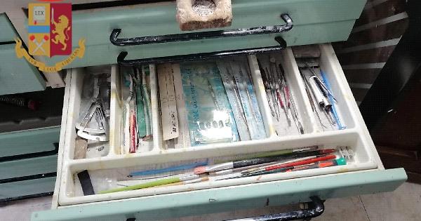 Nel locale, che si presentava in pessime condizioni igienico-sanitarie, gli operatori hanno rinvenuto numerose attrezzature e strumenti generalmente utilizzati dai medici odontoiatri.
