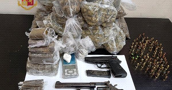 NAPOLI. Ieri pomeriggio gli agenti del Commissariato Secondigliano, durante un servizio di contrasto allo spaccio di sostanze stupefacenti, hanno effettuato un controllo in via degli Ortolani presso l’abitazione di un uomo dove hanno rinvenuto un revolver Smith & Wesson cal. 22, risultato rubato nel 2015, una pistola semiautomatica replica Bruni mod. New Police 8 mm priva di tappo rosso, 92 cartucce di vario calibro, 4 cartucce a salve cal. 8mm, 19 buste con 1340 grammi circa di marijuana, un involucro con circa 12 grammi di cocaina, 2 buste e 11 involucri contenenti 1200 grammi circa di hashish, 4 bilancini di precisione e diverso materiale per il confezionamento della droga.