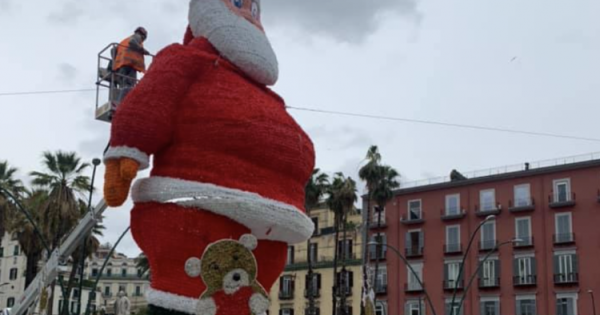 Il gigantesco Babbo Natale installato ieri in piazza Vittoria, sul lungomare di Napoli, è stato rimosso come già annunciato dalla Camera di Commercio che, in un comunicato, parla di «polemica inutile» spiegando che il Babbo Natale era stato installato «al solo fine di testare i cavi di sostegno».