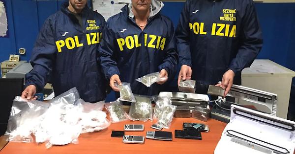 Irruzione dei poliziotti in un appartamento nella zona dominata dal clan Puccinelli. Arrestato un 27enne. Sequestrate cocaina e hashish per rifornire le piazze di spaccio