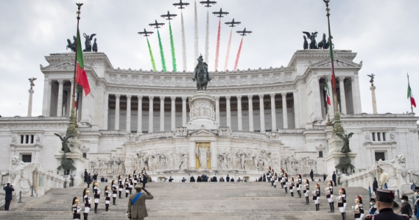 "Il centesimo anniversario della traslazione del Soldato ignoto -afferma ancora Mattarella- richiama alla coscienza nazionale l’immane sacrificio delle Forze Armate e del Paese intero nei conflitti che hanno attraversato la storia europea del ‘900. La nostra storia è segnata dalla tragedia della Prima guerra mondiale: nel dolore condiviso si è cementato un sentimento di fratellanza inestinguibile tra il Paese e i cittadini in uniforme. Oggi gli eredi di quelle tradizioni confermano di rappresentare un patrimonio di virtù civiche, di coesione, responsabilità, a disposizione del Paese". La cerimonia si è conclusa con il tradizionale passaggio delle Frecce tricolori, mentre nelle finestre dei palazzi di piazza Venezia sono state esposte le bandiere italiane. (di Sergio Amici)