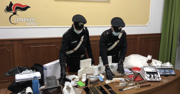 Tre gli arresti messi a segno dai militari dell'Arma che hanno inferto un duro colpo alla criminalità organizzata. Nel comune di Palma Campania, i Carabinieri hanno arrestato per detenzione di droga un 37enne incensurato del posto. L'uomo era a bordo della sua auto, era evidentemente nervoso. Quando i carabinieri hanno approfondito il controllo hanno trovato nel cofano ben 10 chili di cocaina purissima suddivisa in 10 confezioni da 1 chilo.Singolare che ogni pacco di droga presentasse al suo interno una banconota colombiana e in bassorilievo una svastica. La cocaina avrebbe fruttato oltre 1 milione di euro nella vendita al dettaglio. Durante le diverse perquisizioni domiciliari effettuate dai Carabinieri del Comando Provinciale, a finire in manette per detenzione abusiva di arma e ricettazione il 30enne Simone Bartiromo e un 32enne incensurato. Il primo è di Marano di Napoli mentre l'incensurato è del rione traiano. I Carabinieri del nucleo investigativo hanno rinvenuto nella loro abitazione di San Gennaro Vesuviano una pistola marca cz mod.75sp-01 risultata rubata e pronta all'uso e 12 munizioni calibro 9x21. Rinvenuti e sequestrati anche 13 chili di sostanza da taglio, un impianto di video sorveglianza con 7 telecamere perimetrali, diversi smartphones e 3 katane. I 3 arresti sono stati convalidati e tutti rimangono in carcere