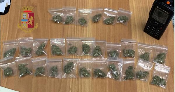 I poliziotti lì hanno controllati trovando uno di essi in possesso di 22 involucri contenenti 23 grammi circa di marijuana e 20 euro, mentre indosso agli altri due, 7 grammi circa della stessa sostanza.