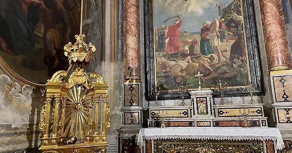 NAPOLI. Il 25 novembre, l'arcivescovo di Napoli Domenico Battaglia ha messo piede per la prima volta nella Chiesa di Santa Caterina a Formiello, dove – alle ore 18,30 - ha celebrato una messa in onore della santa di Alessandria. E, come ad ogni fedele che varca il portone del cinquecentesco luogo sacro a Porta Capuana, anche don Mimmo è rimasto incantato dall’imponente struttura, dagli affreschi e da uno in particolare, dedicato ai Santi Martiri d’Otranto.