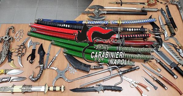 I carabinieri della sezione radiomobile della compagnia di Torre del Greco hanno denunciato per detenzione abusiva di armi un 39enne del posto. I militari hanno perquisito la sua abitazione ed hanno rinvenuto e sequestrato un vero e proprio arsenale di armi asiatiche. 8 Katana, 23 pugnali, 2 tirapugni, 1 balestra con frecce, 1 ascia animata, 1 shuriken e 2 sai giapponesi le armi che il 39enne deteneva illegalmente. Trovati anche 2 dosi di marijuana e per questo motivo l’uomo sarà segnalato alla prefettura quale assuntore di sostanze stupefacenti.
