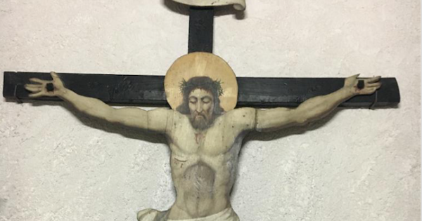 CASTELLAMMARE DI STABIA. Bisogna fotografarlo stando ai suoi piedi e poi ingrandire l'immagine della foto su quel volto, per cogliere la formidabile somiglianza che ha con l'immagine della Sacra Sindone. Sono le sembianze del Cristo sul Crocifisso che di recente è stato sollevato e posto all'ingresso della Cattedrale di Castellammare di Stabia. Ed è una grande emozione quella che poi si prova constatando che questa preziosissima raffigurazione accoglie il fedele prima ancora di varcare la porta del maestoso tempio dedicato a Maria Assunta e San Catello. L'intero Crocifisso, a grandezza naturale, ricava misure e dettagli dalla Sacra Sindone custodita a Torino. Lo sforzo e la buona volontà di un gruppo di fedeli ha portato al recupero e al restauro di questo crocefisso dimenticato, datato inizi Ottocento. Merito del dottor Luigi Esposito, che ha mobilitato il gruppo di volenterosi stabiesi i quali si sono autotassati e hanno potuto affidare il restauro a una valente professionista, MariaConsiglia Stile. Ad agire è stata la Delegazione di Napoli e Campania del Sacro Militare Ordine Costantiniano di San Giorgio, e in particolare il Delegato, Marchese Manuel de Goyzueta, e il Segretario Generale, Ing. Gionata Barbieri. «Durante la rivoluzione napoletana del 1799 gli invasori francesi e i giacobini locali imposero nelle varie città e cittadine del Regno gli “alberi della libertà”, simboli paganeggianti della religione che, nelle loro intenzioni, avrebbe dovuto soppiantare il Cristianesimo» spiega uno stampato illustrativo che racconta la storia del crocefisso. «Appena fu possibile, la popolazione abbatté tali simboli e Ferdinando IV, ritornato sul trono di Napoli, volle donare in tutto il Regno vari Crocifissi, dipinti su legno a grandezza naturale, da erigersi ad espiazione del sacrilego “albero”». Nel 2021 il Dott. Esposito ha segnalato la presenza di uno di questi Crocifissi in un deposito della cattedrale di Castellammare di Stabia e ha promosso il suo restauro. «Circola voce che l’artigiano che lo dipinse volle rifarsi a misure e fattezze della Sacra Sindone della quale all’epoca cominciavano a circolare delle raffigurazioni - spiega Esposito - Se ciò fosse vero, così come parrebbe dai bozzetti, questo Crocefisso avrebbe un valore mistico anche superiore a quello che si stimava, che era di entità storica ed evocativa di una battaglia per il cristianesimo che continua ai nostri giorni, anche con l’impegno che è stato profuso per questo restauro e il suo ripiosizionamento all’ingresso della Cattedrale di Castellammare di Stabia». Dopo tanti anni di oblio, il Crocifisso è stato quindi nuovamente esposto alla venerazione dei fedeli, per interessamento dell’Arcivescovo, Mons. Francesco Alfano; del Parroco della Cattedrale, Don Antonino D’Esposito; del Direttore dell’Ufficio Beni Culturali, Don Pasquale Vanacore.