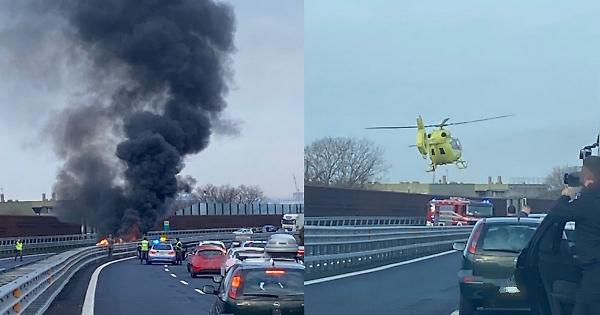 L'auto che percorreva il raccordo autostradale nel senso giusto di marcia ha preso subito fuoco e il conducente è morto.