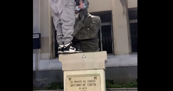 «Gli incivili si erano arrampicati sulla struttura, rischiando di danneggiarla, e gli avevano messo una mascherina. Il tutto fra insulti come “sporco", o ancora “uomo di m…" tra le risate. Questo atto vergognoso è un’offesa ad una figura simbolo per tutta la nostra comunità e a livello nazionale e internazionale. - si legge in una nota - Ho sentito sulla vicenda il sindaco di Casalnuovo Massimo Pelliccia e mi ha contattato Elena Anticoli De Curtis, nipote del noto artista napoletano per manifestare tutto il suo dolore per l'avvenimento increscioso».