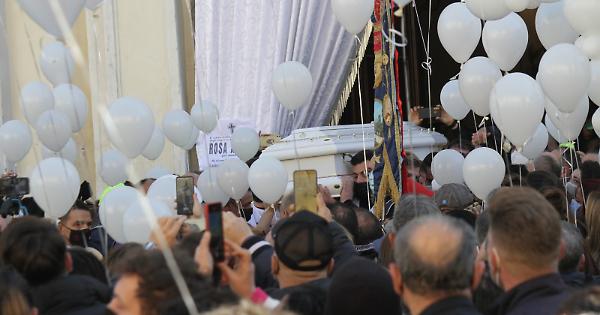 Tanti ragazzi indossano magliette bianche con impresso il volto della 23enne, e una gigantografia di Rosa affissa a un portone laterale della chiesa sovrasta decine di lumini sistemati a terra a formare il nome della ragazza.