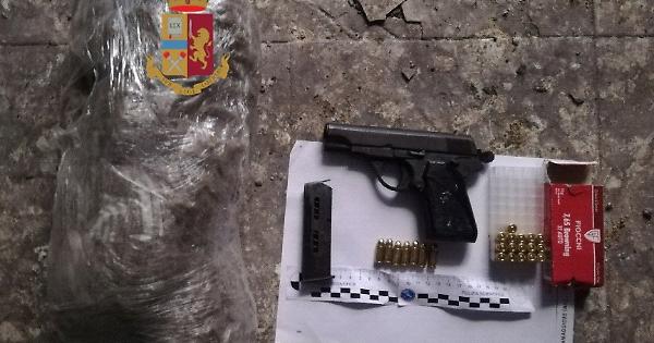 NAPOLI. Stamattina gli agenti del Commissariato Vicaria-Mercato hanno effettuato un controllo in uno stabile di vico Grazie a Sopramuro ed hanno rinvenuto, all’interno di un appartamento in stato di abbandono, una pistola cal. 7,65 con 23 cartucce dello stesso calibro e una busta con 1026,16 grammi circa di marijuana che sono state sequestrate.