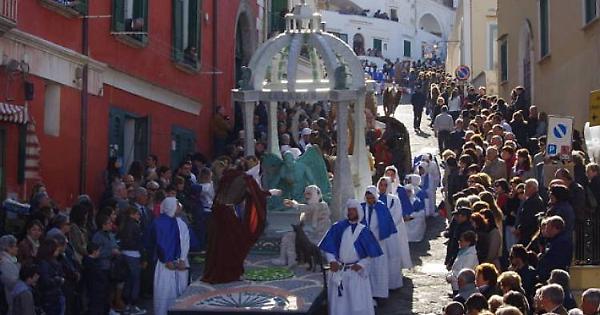 Un rito fortemente identitario, che affonda le radici alla fine del Sedicesimo Secolo e che coinvolge migliaia di isolani: dopo due anni di stop causato dalla pandemia da Covid-19, venerdì 15 aprile torna a Procida la Processione dei Misteri, inserita quest'anno nel programma della Capitale Italiana della Cultura 2022. La costruzione dei Misteri, manufatti artistici ispirati ad episodi del Vecchio e Nuovo Testamento e realizzati con vari materiali (cartapesta, legno e altri materiali poveri, con una particolare attenzione al riuso), è stata avviata nei mesi scorsi e ha dato vita a 30 tavole, che saranno portate a braccio attraverso il centro dell'isola, dal borgo di Terra Murata a Marina Grande.