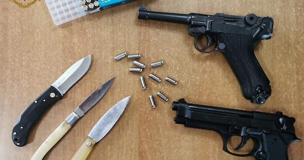 Gli agenti hanno raggiunto e bloccato l’uomo trovandolo in possesso di una pistola replica Ruger priva di tappo rosso, una pistola a salve con 25 cartucce e 3 coltelli con le lame lunghe 8, 18 e 20 cm.