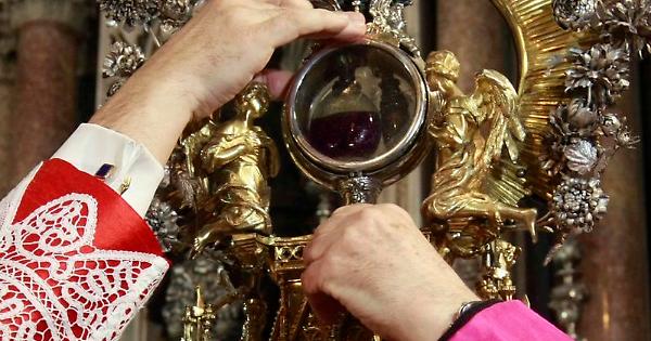 Niente attesa a Napoli per il “miracolo di maggio" di San Gennaro: quando sono state estratte dalla cassaforte le ampolle, il sangue del patrono era già liquefatto contrariamente al solito.